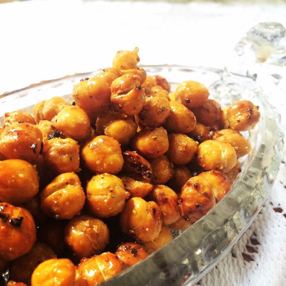 -Once out of the oven, you can toss with olive oil (about 1 tbsp per can of chick peas) and any seasoning. I used Mrs dash here but you could do just salt and pepper, a Parmesan, maybe a honey cinnamon, pretty much whatever you have in your cabinet!