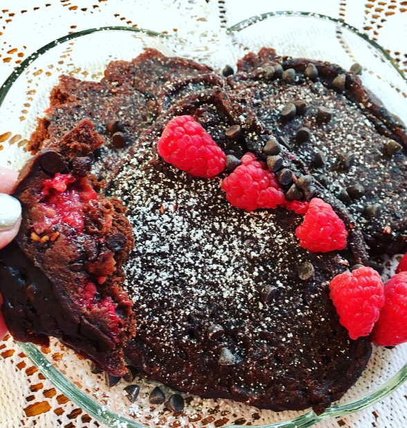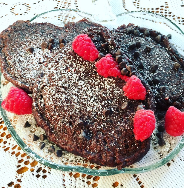 Someone ordered my Orange Raspberry Muffin Squares from my shop. After I made them and had some leftover raspberries, I knew I wanted to try my hand at chocolate pancakes! I’ve been on a pancake kick Y’all! My fiancé is NOT mad about that, hahaha!