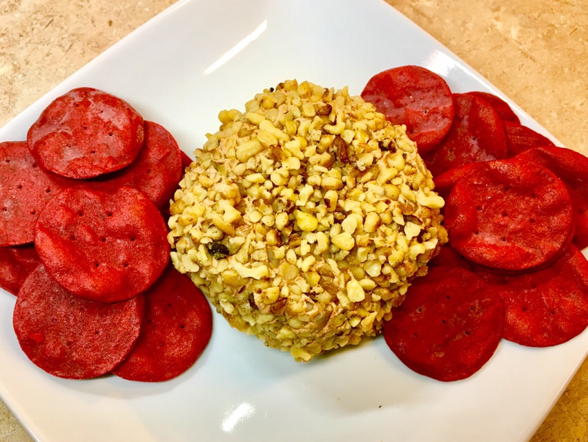 This walnut ‘cheese’ ball is pretty legit and may have finally changed my mind on vegan ‘cheese’! We enjoyed it with beet crackers!