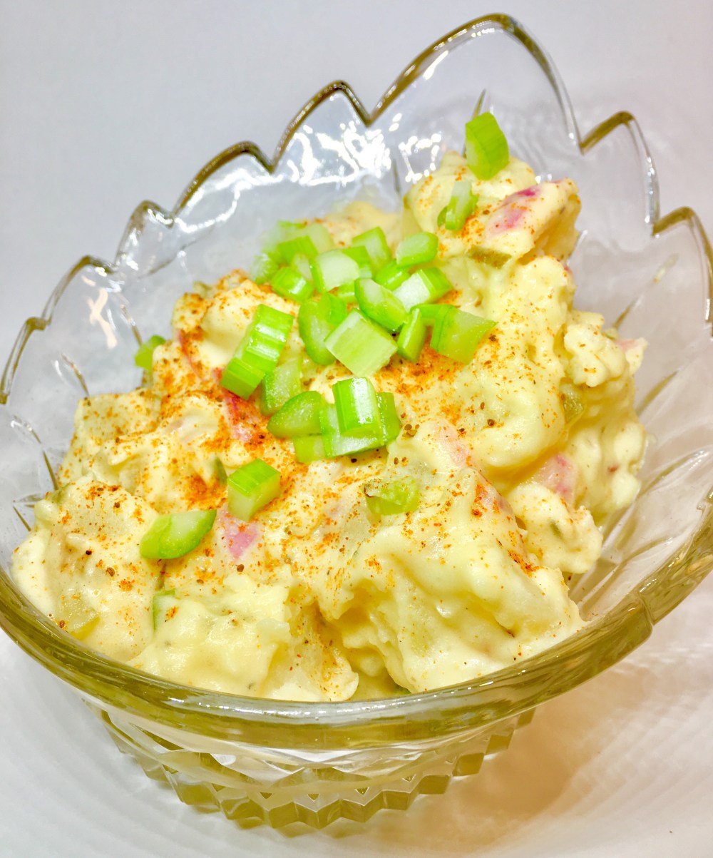 Y’all! Your friends will NOT believe that this potato salad is vegan! It is perfect for introducing omnivores to veganism at a barbecue this summer! Knock them out with delicious flavor! You can easily replace the Old Bay with Paprika if you can’t find it but I really like the extra level of flavor with the Old Bay.