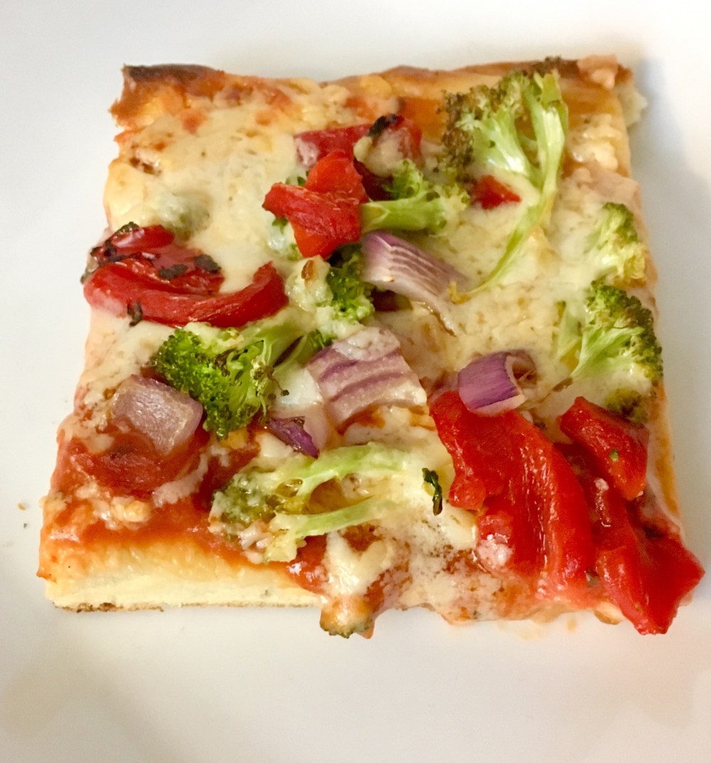 You can certainly use any pizza dough recipe of your choosing or just a regular store bought kind. The key I have found to ANY vegan pizza is the vegan ‘cheese’. Follow your heart is by far the best!
