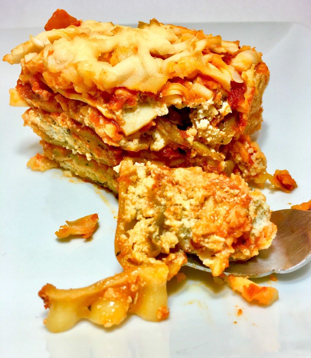 - Put a little sauce on the bottom of a 13X9 inch casserole dish and place 3 of your lasagna noodles. Then add some of the ricotta, then your Mozz on top of that. Then layer your eggplant. Cover with sauce. Then add noodles again, ricotta, Mozz, eggplant, sauce…and so on and so forth. When you get to the top layer, I switch it up and do the ricotta, then the sauce, then the Mozz. I don’t use eggplant on the top either.
