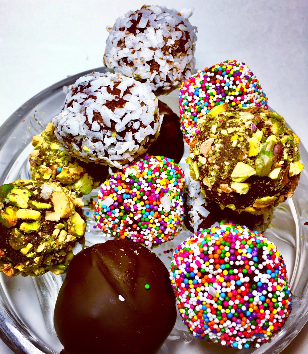- Roll into a coating of your choosing, like nuts, or just put on a plate and chill again so you can dip in your melted vegan chocolate for a traditional truffle.