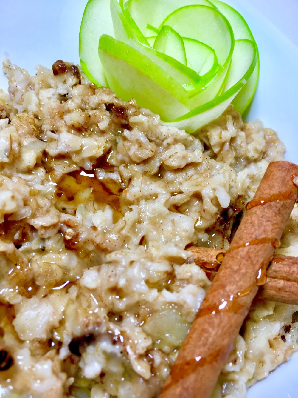 - Any toppings of your choosing, I like a little maple syrup and extra apple slices on top of mine but you do you boo