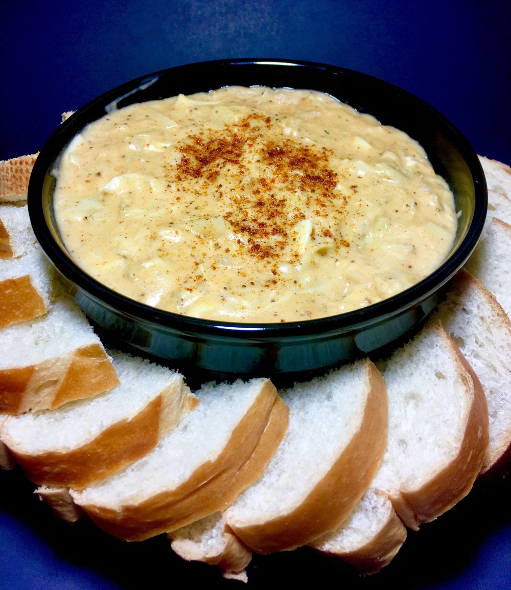 Then you’ll need some cold leftover vegan crab dip. On parchment paper, I scooped and spread out circular discs of the ‘crab’ dip and popper it in the freezer.