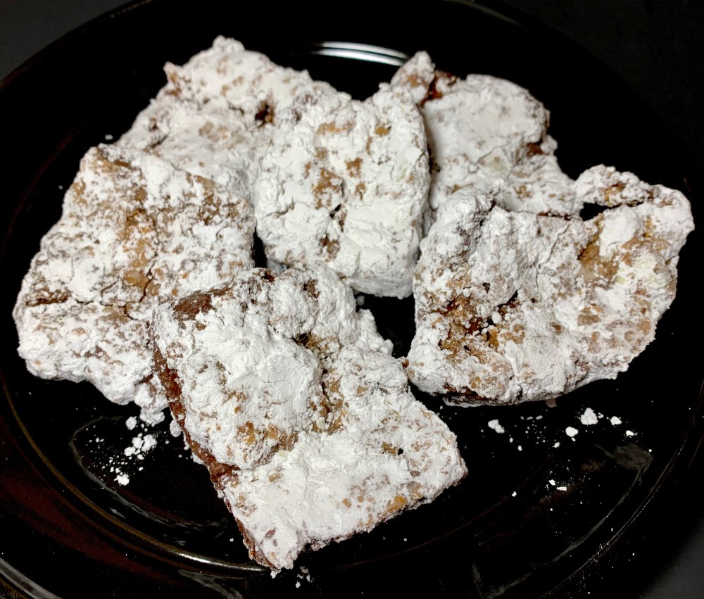 5. Let cool and then cut into squares and toss in powdered sugar!