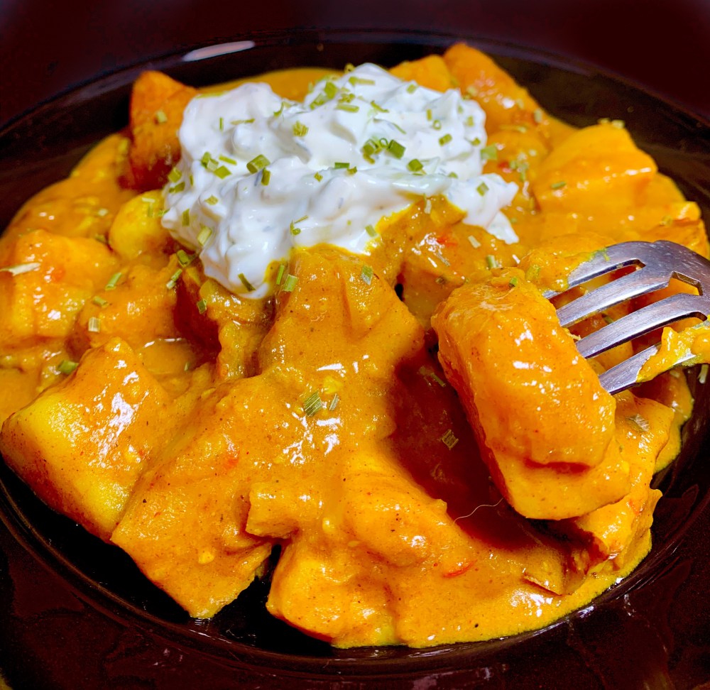 This potato curry is so iconic! I can’t get over how delicious it is! I added a cooling cucumber sauce on top too that really ties everything together!