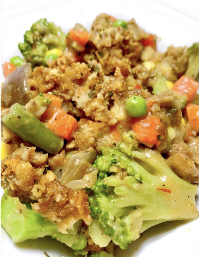 - 1-2 pkgs vegan stuffing mix (prepared)