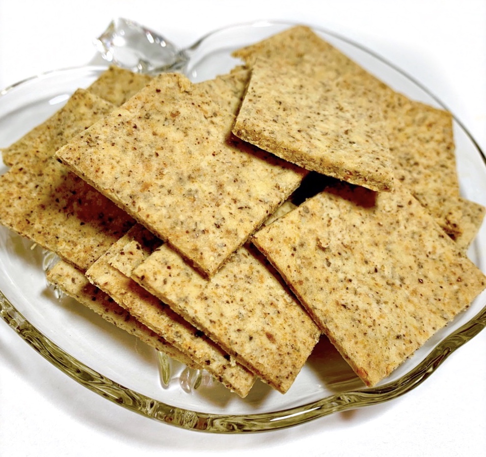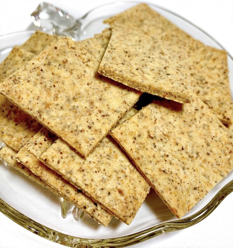 - Transfer dough onto parchment paper, cover with another piece of parchment paper and roll out thin like a cracker.