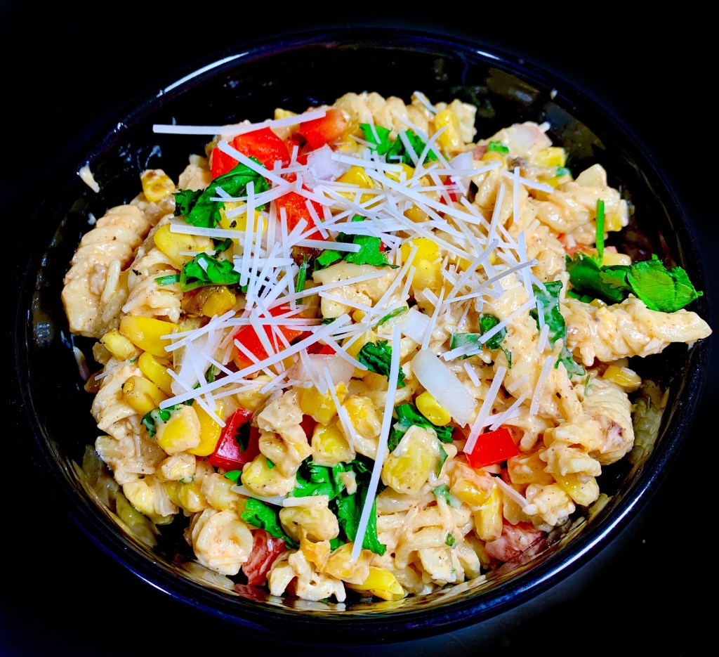 I’m obsessed with pasta salad. I’m also obsessed with Mexican Street Corn (Elote). Let’s put them together shall we?!