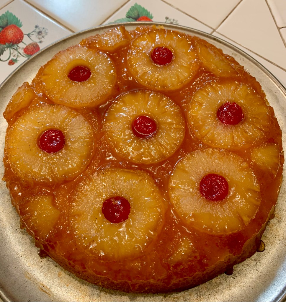 My MIL was talking about this pineapple upside down cake that was a staple for Greg’s dad growing up. We ended up making it for the Super Bowl and then TikTok wanted the recipe. Y’all know me, I’ll share away!
