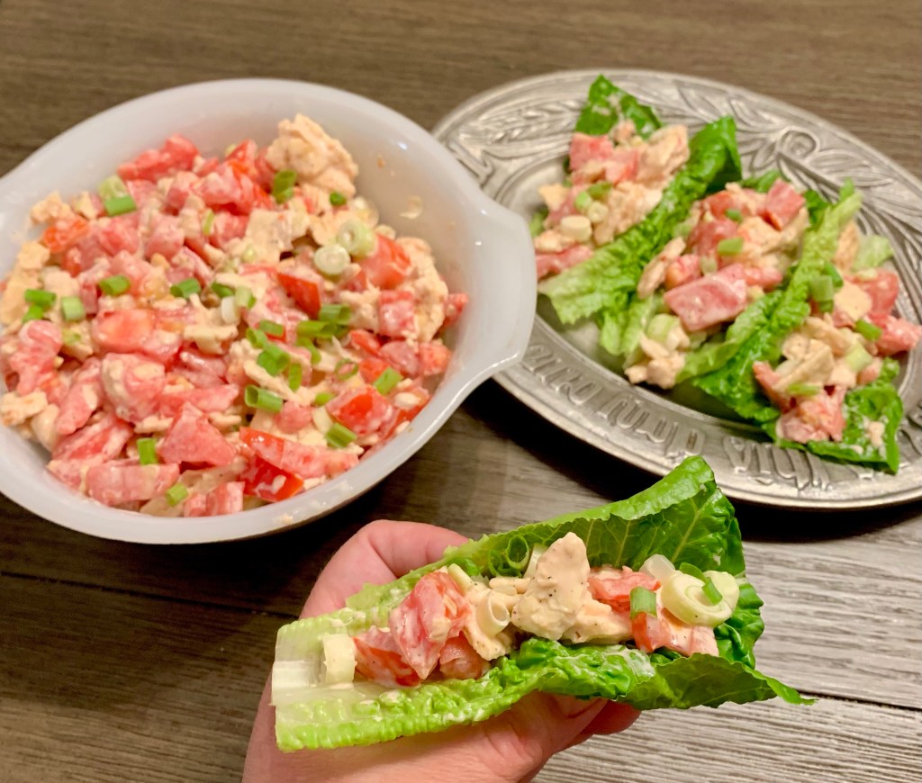 You can eat just the salad itself as a snack or a side dish for a cookout or dinner. But I like to put it in some romaine and voila, lunch is served!