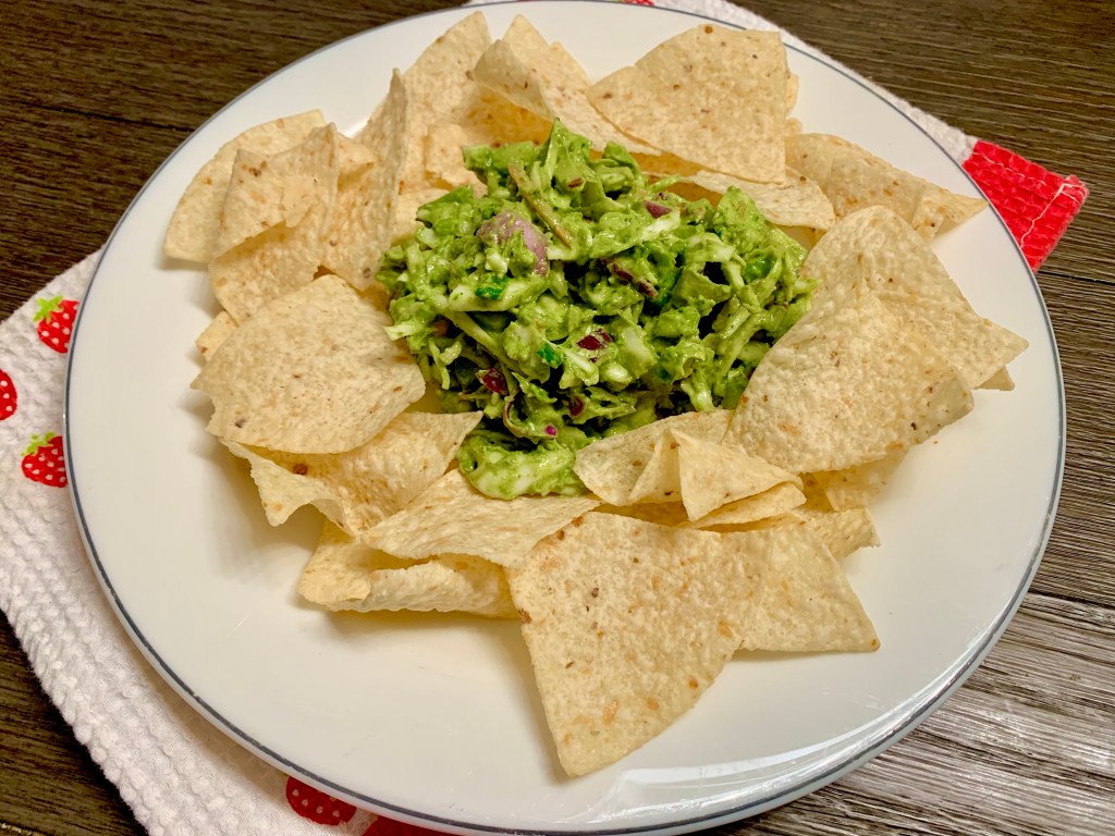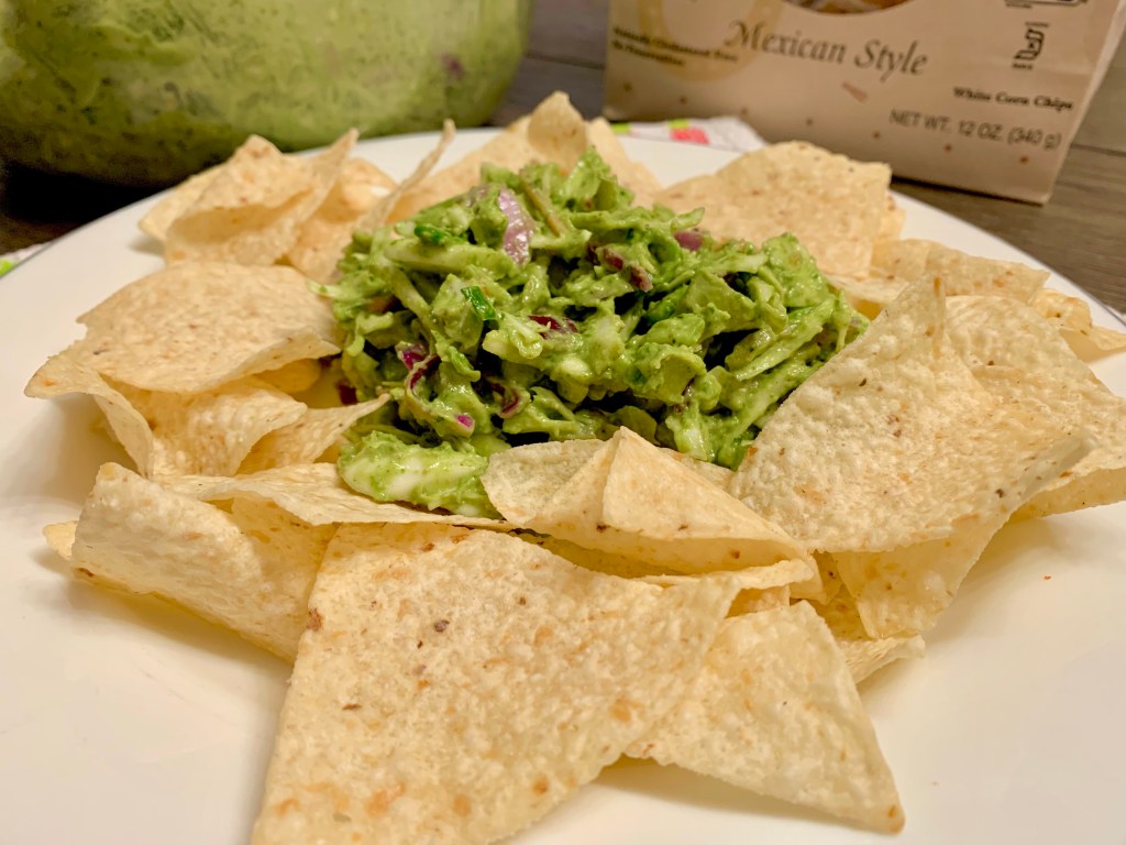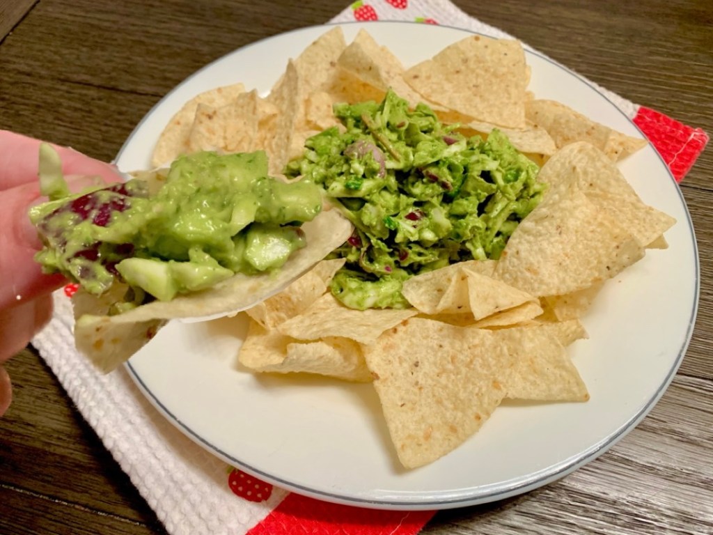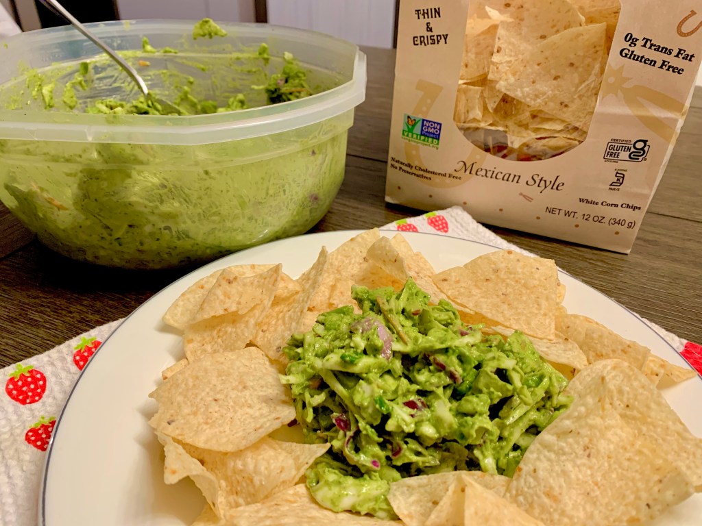 Some no salt tortilla chips and this was perfection! I ate it with some grape tomatoes on the side and of course it paired well so I may add those next time right on there