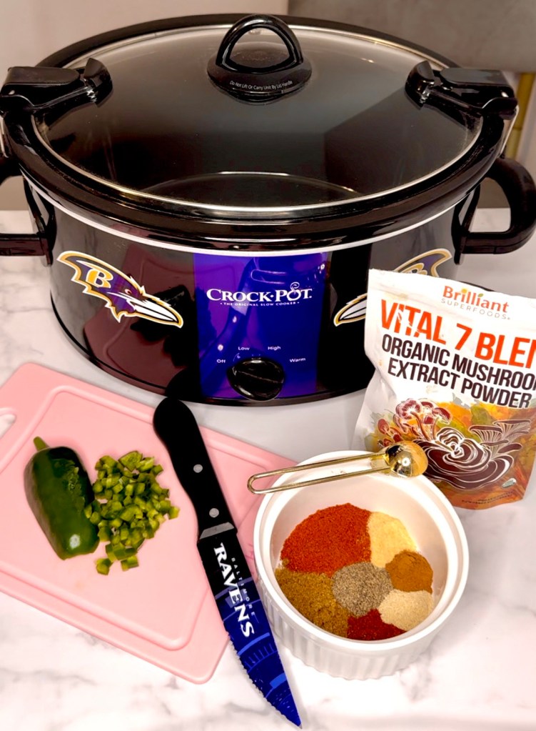 Even though my team wasn’t in the Super Bowl, I just love football and food so much, it was still game on baby! I made an easy crockpot chili that I could have cooking all day long for snacks whenever anyone was hungry!