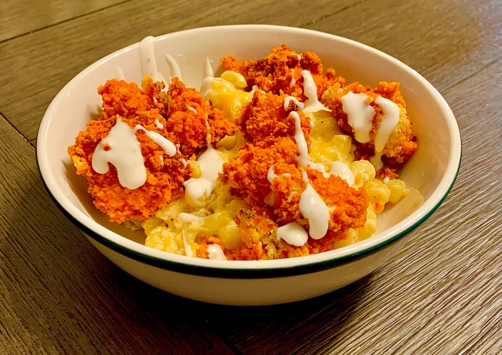 Buffalo Cauliflower Wing Mac & Cheese (No Boil Noodles)