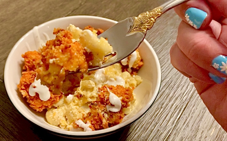 KFC came back out with their $5 Mac & Cheese Bowls the day I decided to make a Buffalo Cauliflower Wing Mac & Cheese Recipe. It was meant to be!