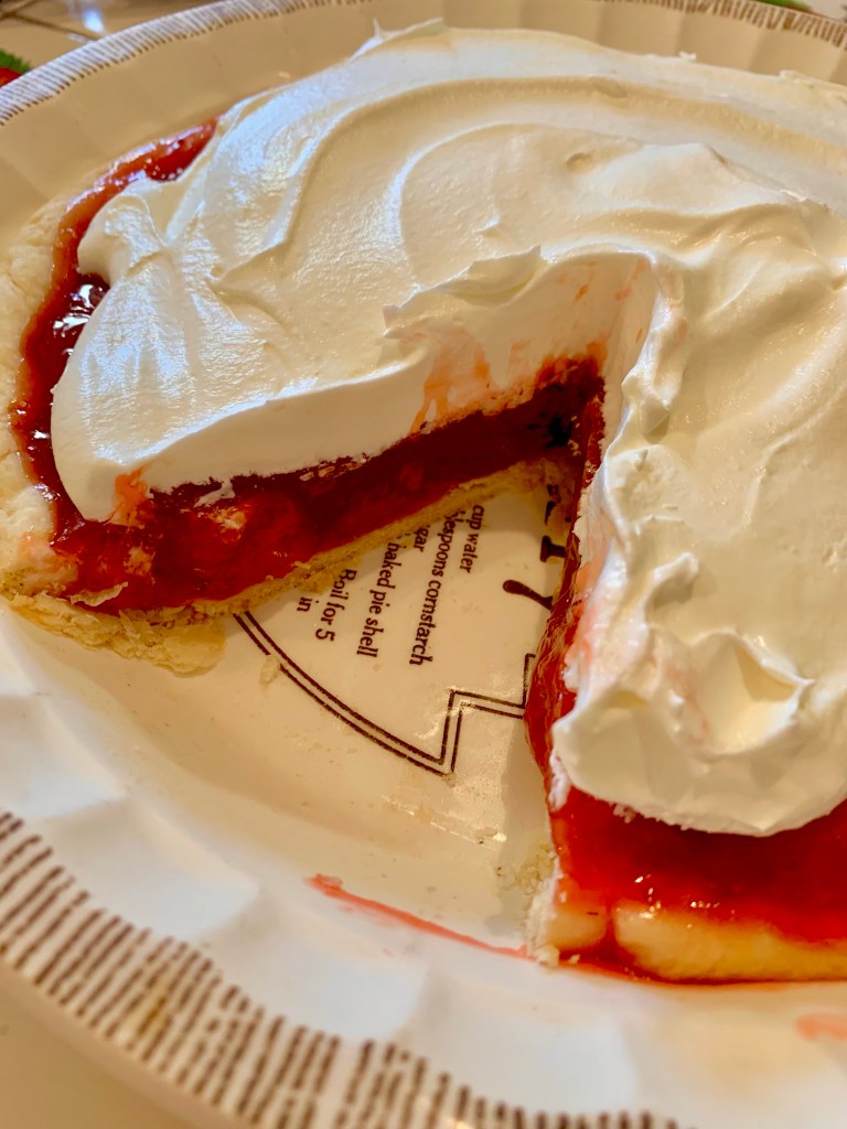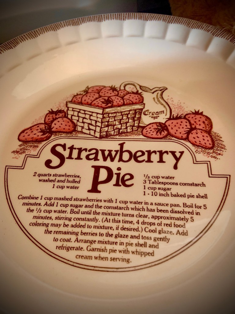 My future MIL loves strawberries! Everything strawberry! I got her an antique pie plate with a strawberry pie recipe on it. This weekend I decided it would be the perfect time to try this pie and see if it’s delicious!