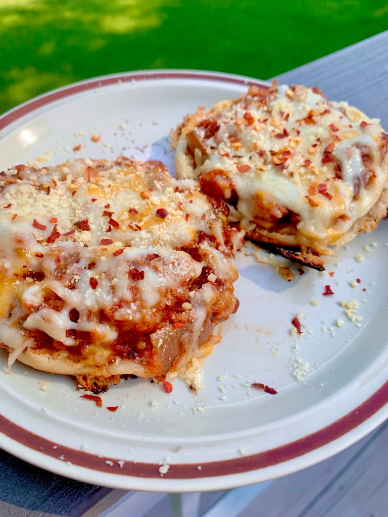 I’ve always been a super fan in English muffin pizzas. When they go on crazy sales at the grocery I buy a bunch and throw them in my freezer!