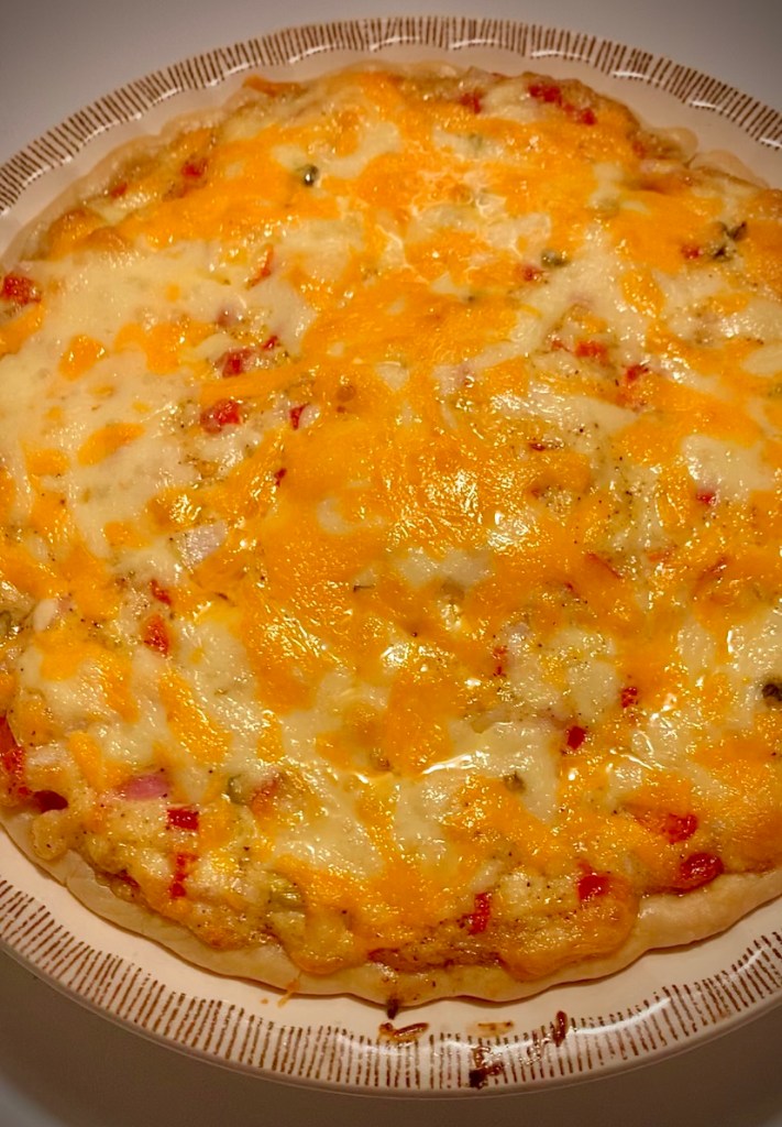 I love tomatoes. I love tomato pie. But sometimes ya gotta switch it up a bit, so here’s a version I threw together the other night with pimentos!