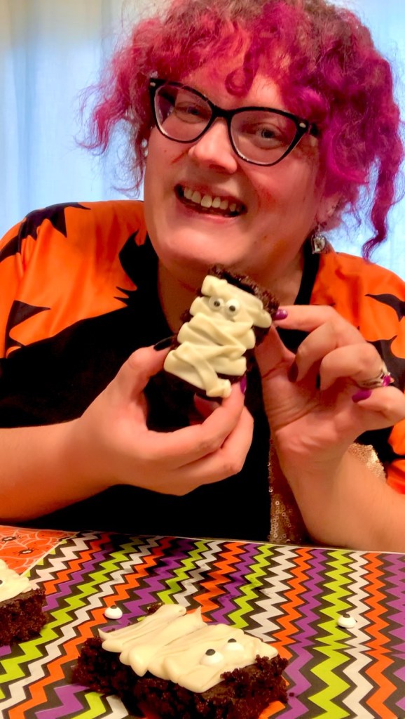 I wanted to try this Pillsbury Gluten Free Brownie Mix that I found at Walmart. So why not make these cute little mummy brownies to celebrate the first of October, spooky month!