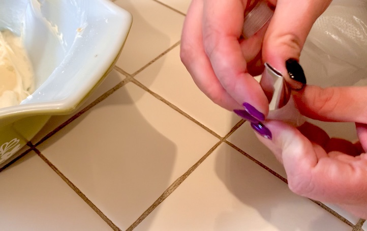 2. Cream the butter, cream cheese, powdered sugar and vanilla together until smooth and place in a piping bag to chill for a few minutes
