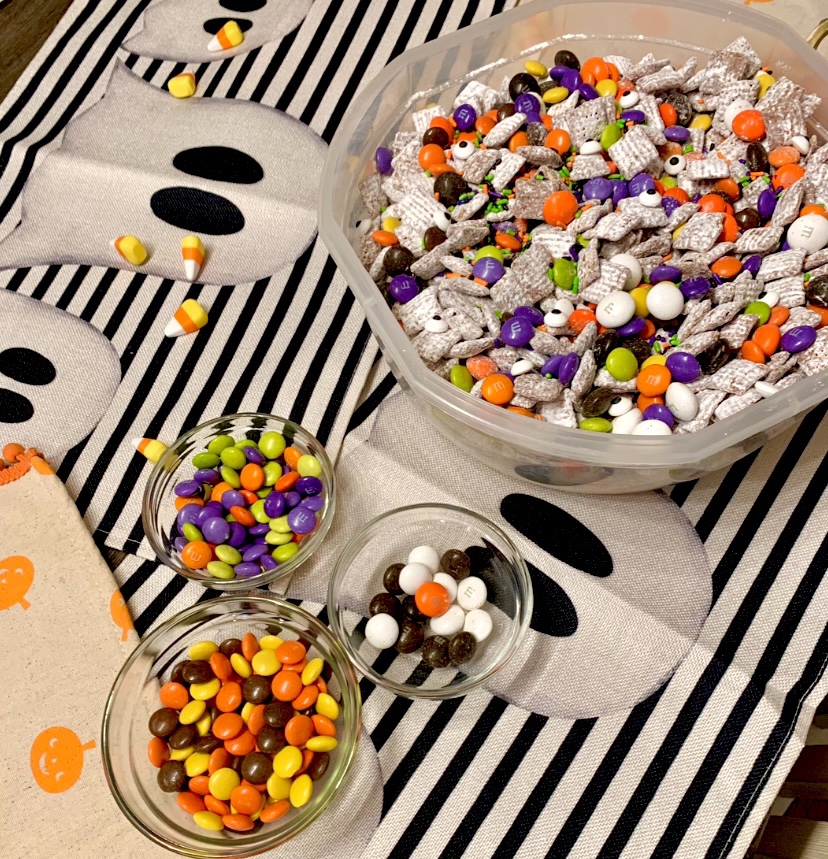 It’s definitely a crowd pleaser no matter the demographic for your Halloween party! I also found these Campfire S’mores M&Ms from amazon that added a lovely sweet marshmallow-y flavor to the mix too!