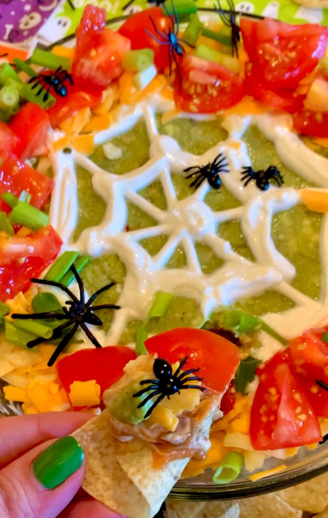 To say that 7 layer dip is a crowd pleaser with my most pickiest of eaters in an understatement! Why not make it spoooooky for Halloween?!