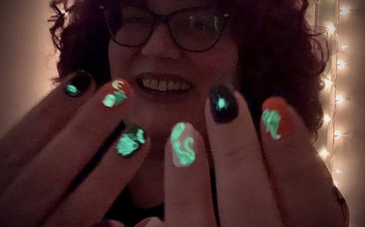 Which, by the way are Glow in the Dark Nail Art Stickers!!! Spoooooky!