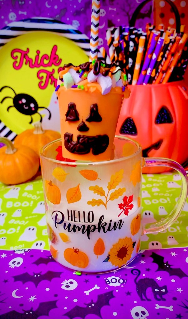 My husband loooooves creamsicle anything! Since it’s an orange color, I figured why not try and make it Halloween somehow! I had extra Spooky Paper Straws from my Halloween Hot Cocoa Bombs.