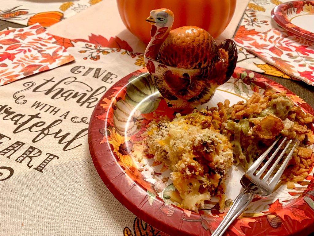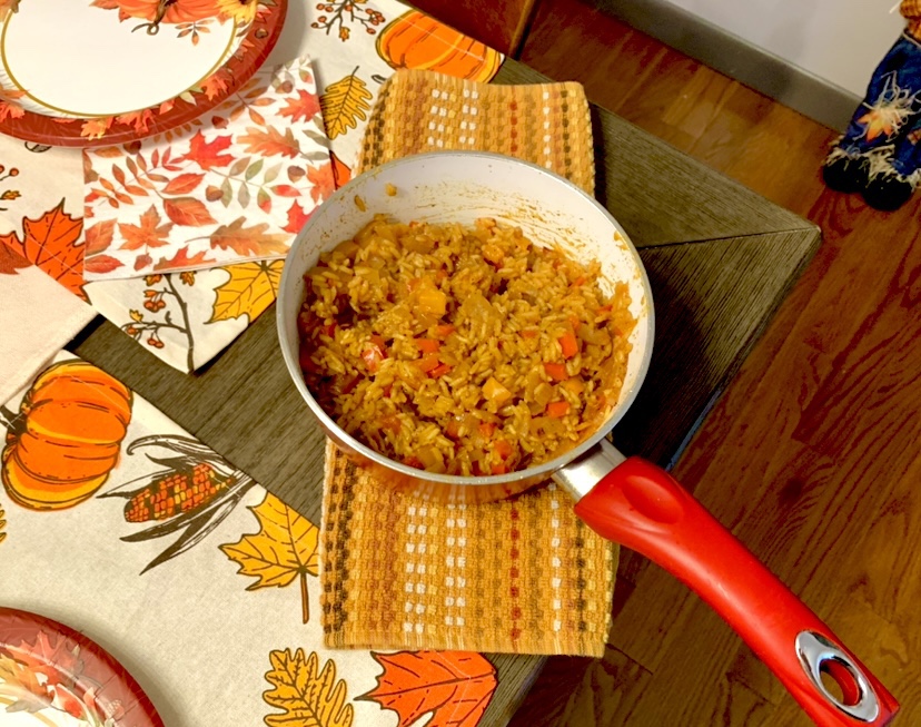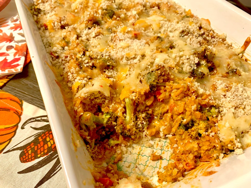 You see the one on the left of the vegan green bean casserole, that’s the cheesy spicy rice and broccoli casserole I’m making. The title is still a work in progress!
