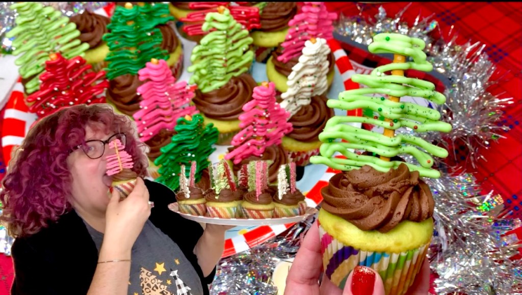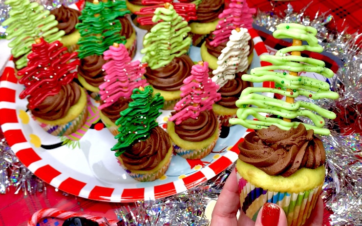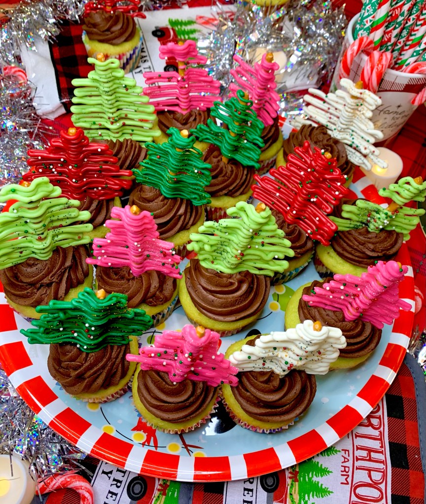 So I made a cupcake Christmas tree Forest! These are surprisingly easy to make, they just require waiting periods, so it takes longer but the cuteness overload is totally worth it to wow your holiday guests this Christmas season!