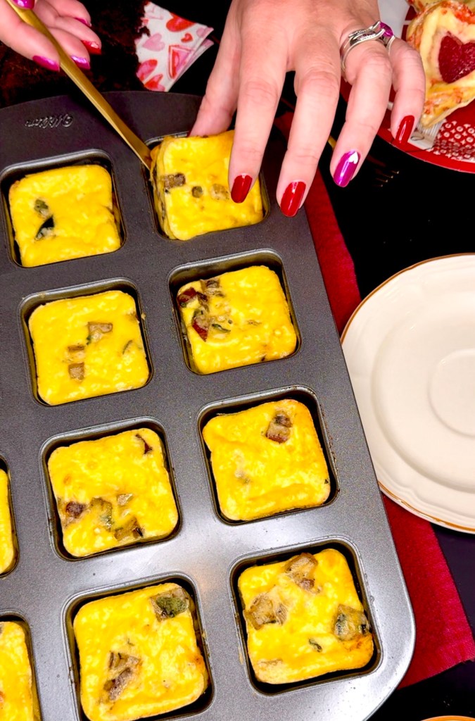 You can also certainly use a regular muffin tin but I quite like using the Wilton Brownie Bar Pan from Amazon to replicate the potato cheddar chive breakfast bakes just like Starbucks!