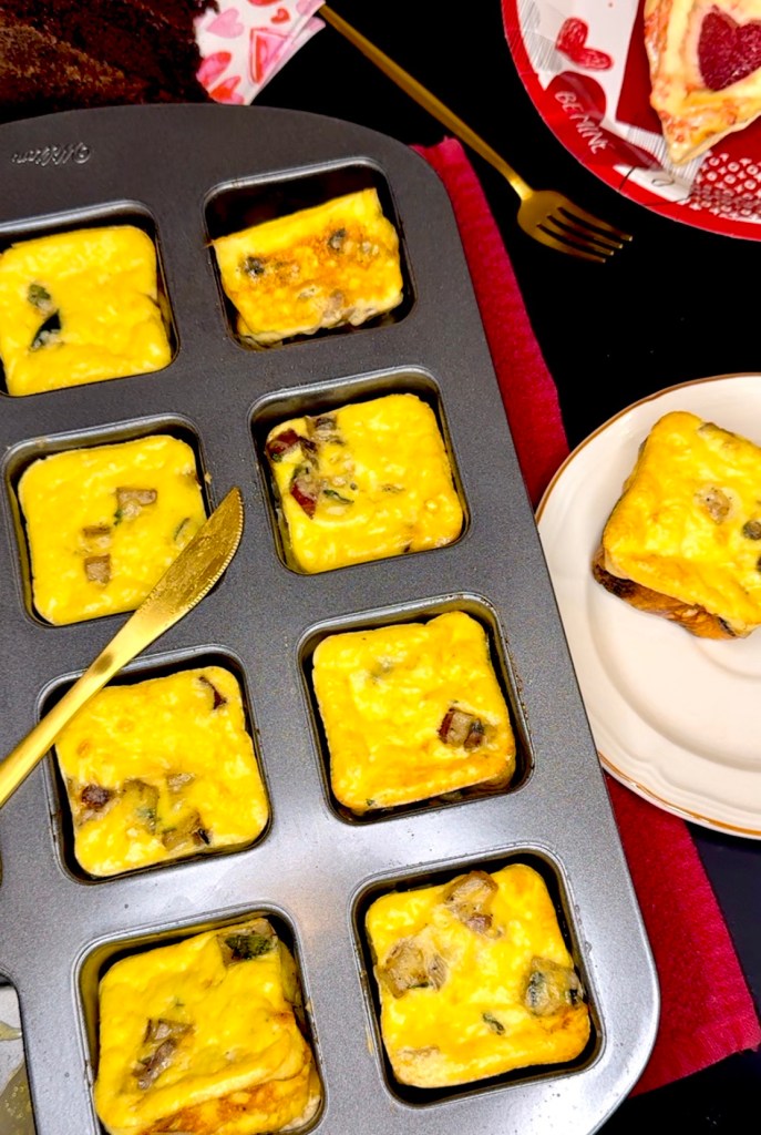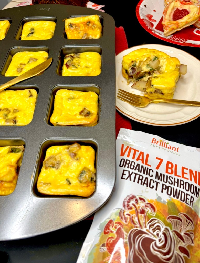 I just made a batch of these and they turned out delicious! Only changes I made was omitting the Dijon mustard (preference) and the mushroom powder (didn’t have). My batch took the upper time to finish because I used mini loaf size squares instead of the brownie bite size squares (what I had on hand. I also had to make a half batch extra of the egg mixture to to finish filling the pans. Thank you for sharing your recipe. Makes for an easy high protein morning eat!