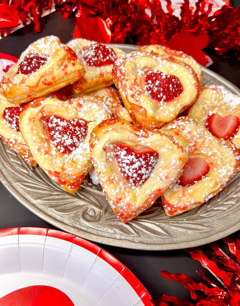 These Valentine’s Day Cookies are so easy to make with just cake mix and cool whip! Im about to make these Heart Shaped Strawberry Cheese Danish treats again though because they were my Valentine’s favorite!