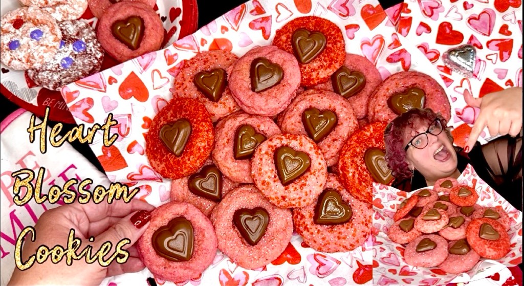 Insert these beautiful Valentine’s Day Heart Blossom Cookies! They’re an easy sugar cookie recipe rolled into Valentine’s Day sugar sprinkles!