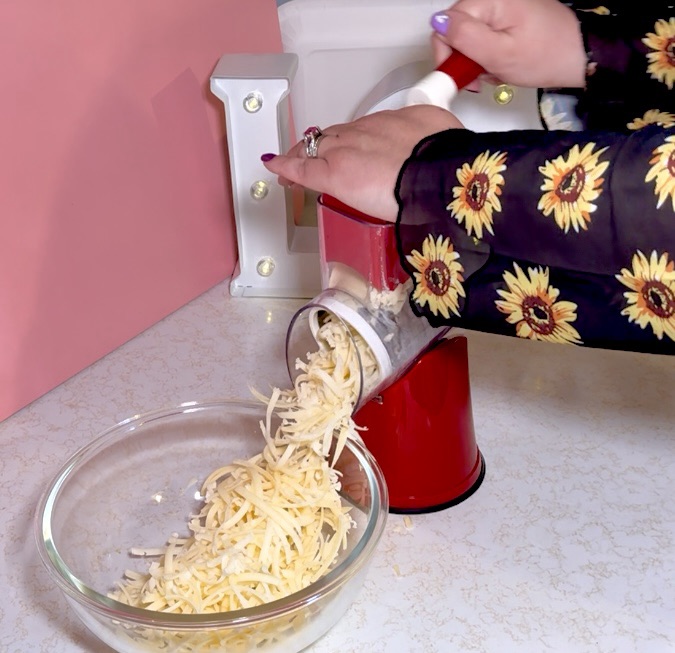 I’ve been living for this Rotary grater from Amazon! I’ve used potatoes and carrots on it too and it’s worked great!