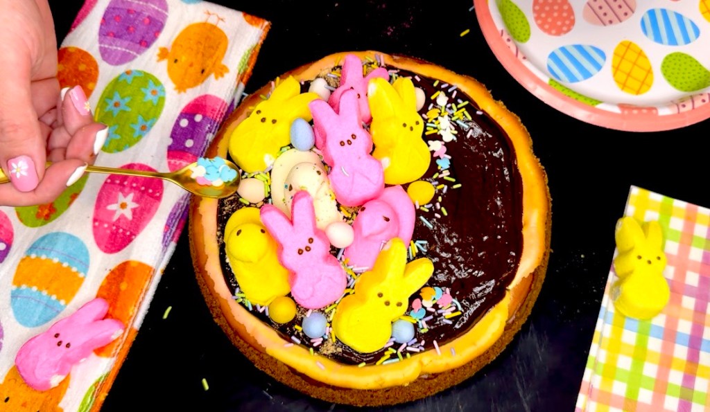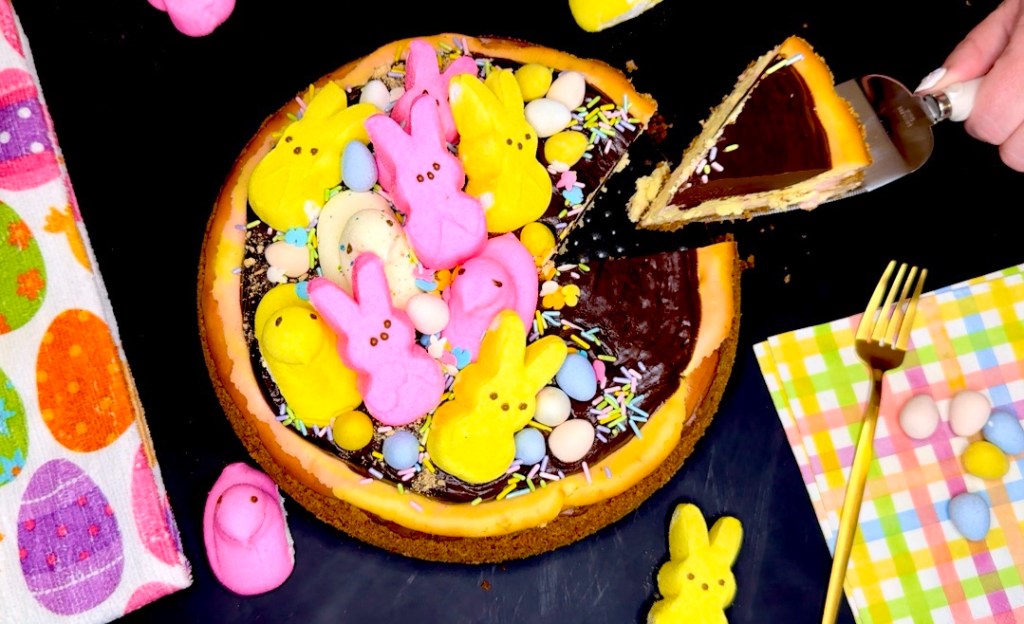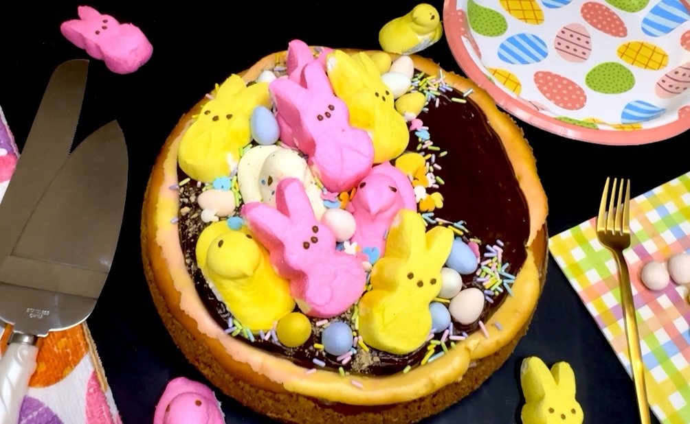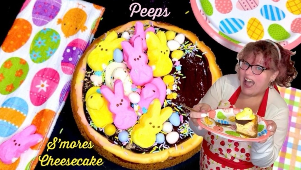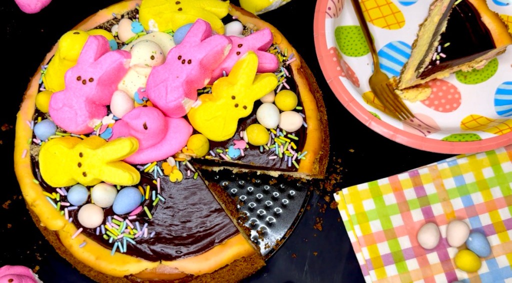 Ok let’s get to baking this decadent peeps s’mores cheesecake for your Easter dessert tablescape!