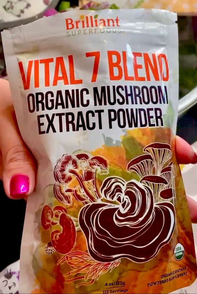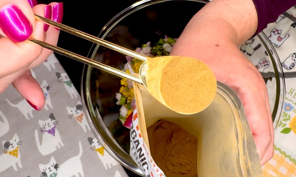 I started with my favorite Organic mushroom powder from Amazon for a pop of umami flavor to our corn salad!