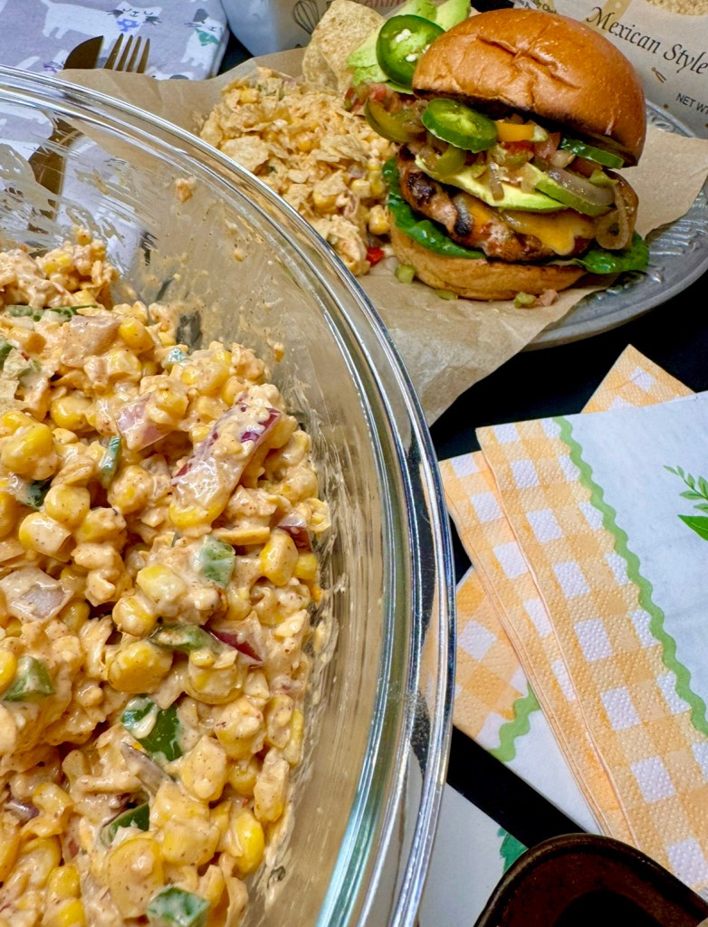 Paula Deen’s Corn Salad Recipe is a solid 10/10 corn salad recipe for summer grilling and chilling! It’s perfect with these Low sodium salsa burgers!