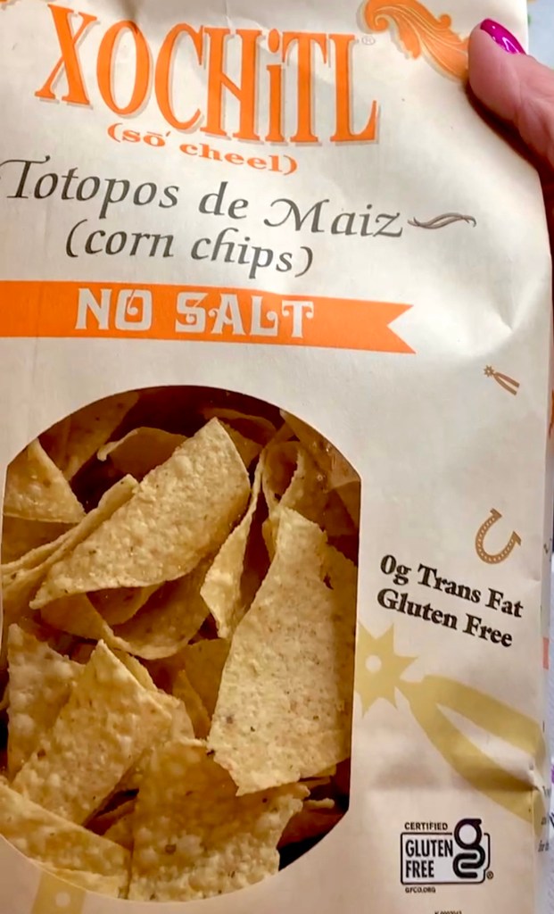So instead of using Fritos, I used these no salt tortilla chips. But we need to add more flavor to our corn salad so that we can recreate that chili cheese fritos corn salad vibe.