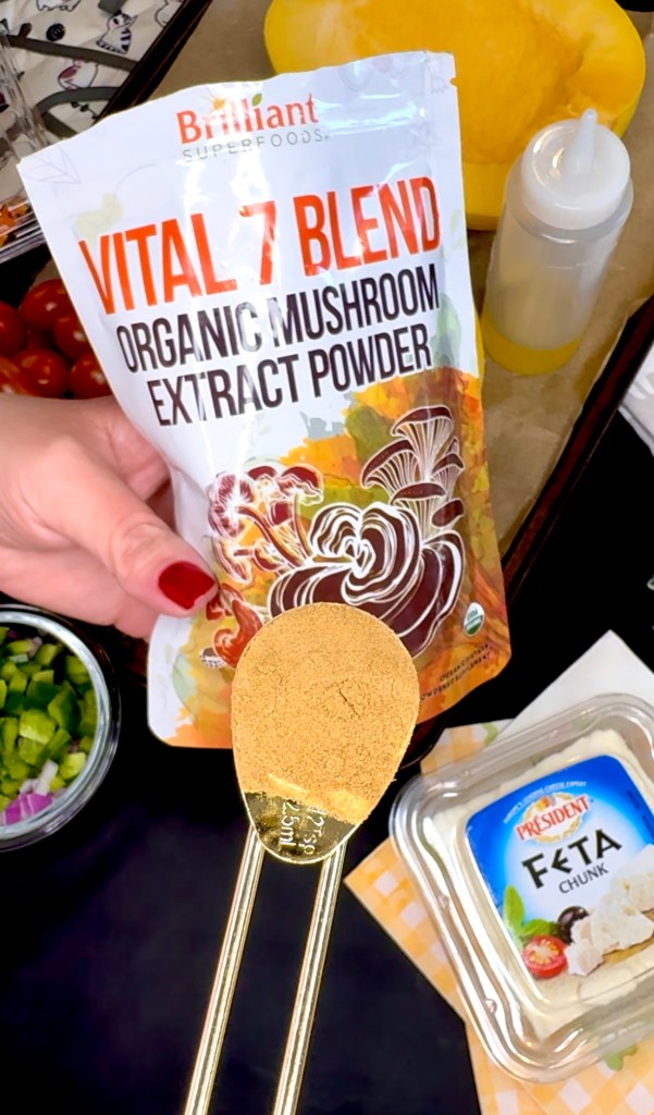 Since I did a no salt added, reduced sodium viral TikTok recipe, I used one of my secret weapons, Ellie’s Best Vital 7 Organic Mushroom Extract Powder from Amazon. If you’ve been here awhile, you know I love Ellie’s Best products and use them daily. This mushroom powder is no different! I don’t like the texture of mushrooms so I love that I can get the nutrients and umami flavor from this beautiful mushroom powder.