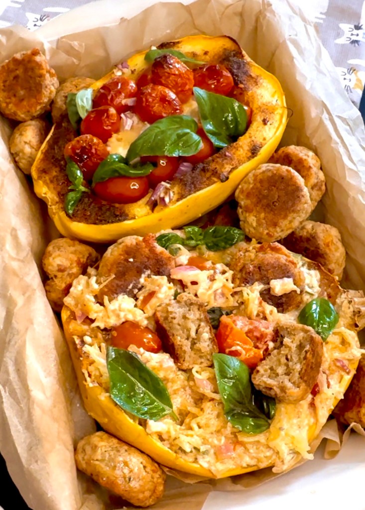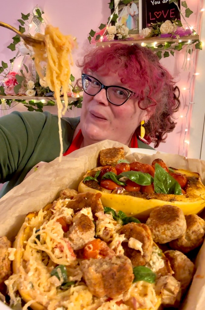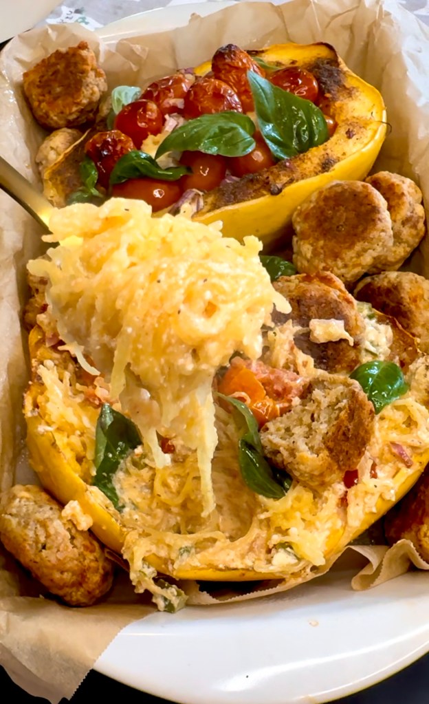 Shoutout to whoever started this viral TikTok trend of feta and tomato pasta! It is so super easy and healthy using spaghetti squash!