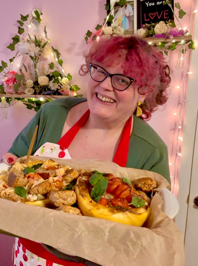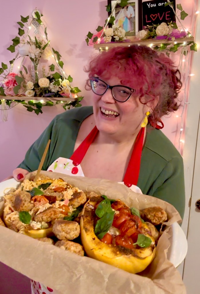 This feta tomato spaghetti squash pasta recipe was just the one I needed for an easy dinner for two! If y’all watch my video, let me know if you like the song I made to go with it! I find it to be hilarious and fun all at the same time! Should I make more songs for my recipes?