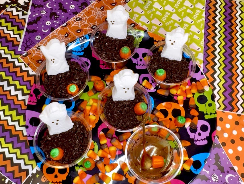 I wanted to make super easy Halloween treats and snacks this year, so I started with these adorable ghosts in a graveyard!