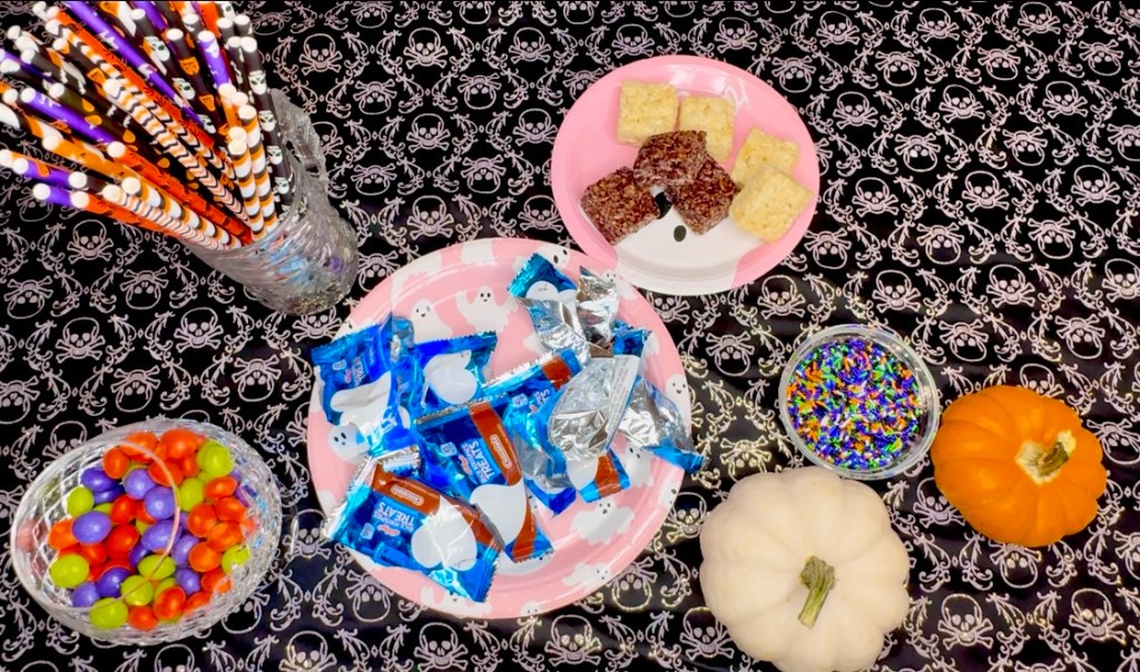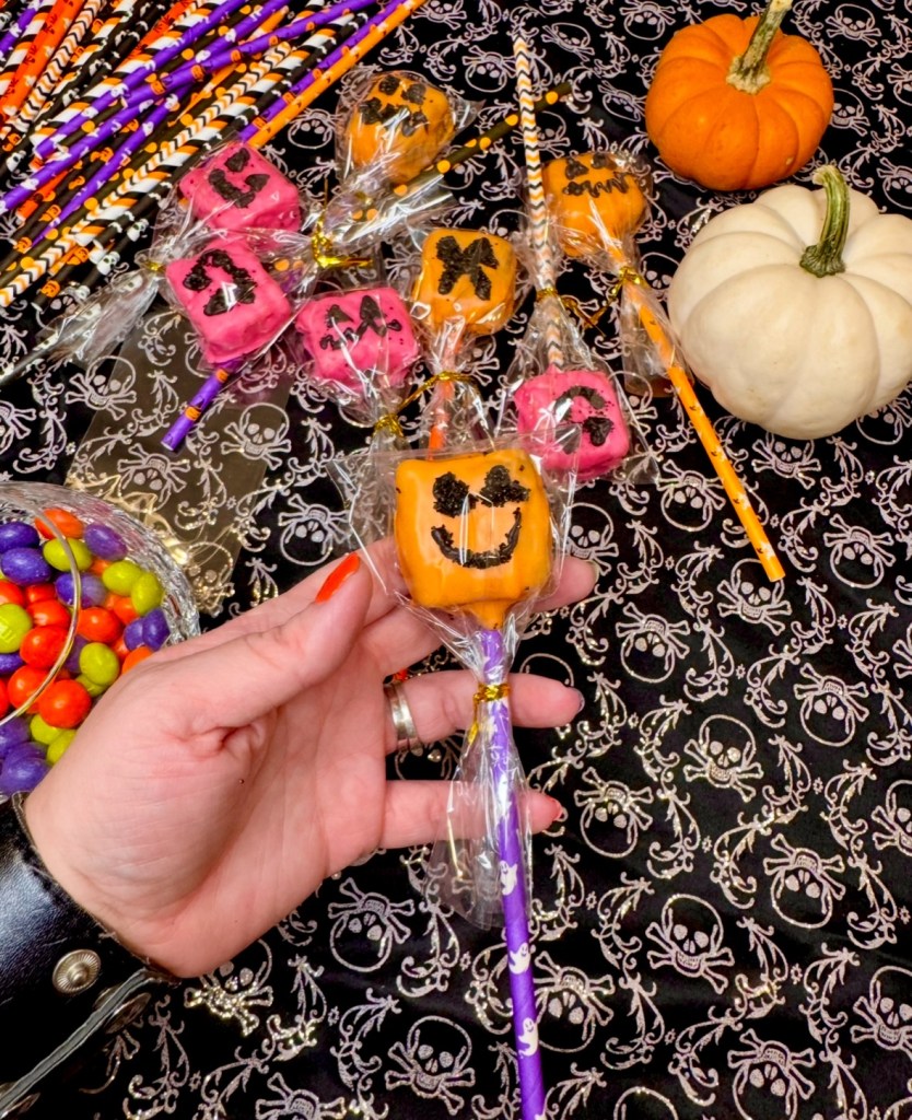 Unwrap all the Rice Krispies treats and put them on these super cute Pink ghost plates from Amazon. I am living for the pink Halloween vibe this Halloween season. So much so that I even made some pink pumpkins for funsies.