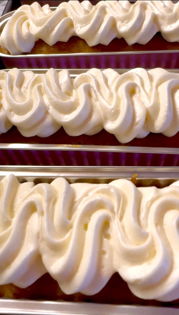 I do need to practice my piping skills for these mini cake pans but they’re still so special. And let me tell you, I tasted one cuz you have to sample your product!