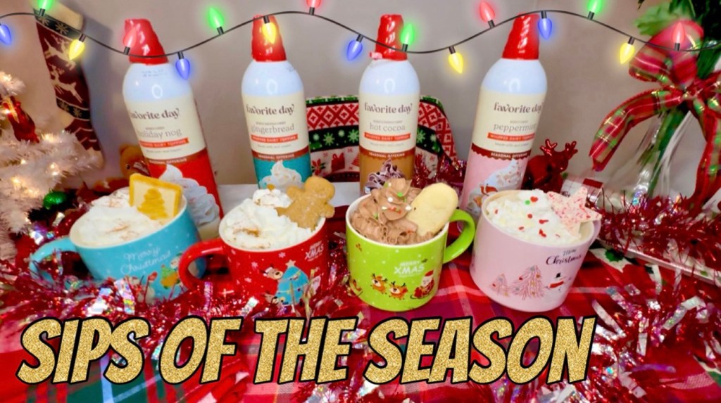 I found these 4 holiday whipped creams from Target this Christmas season and knew immediately I had to make some holiday coffee recipes at home! Be sure to check out my Christmas coffee video too!