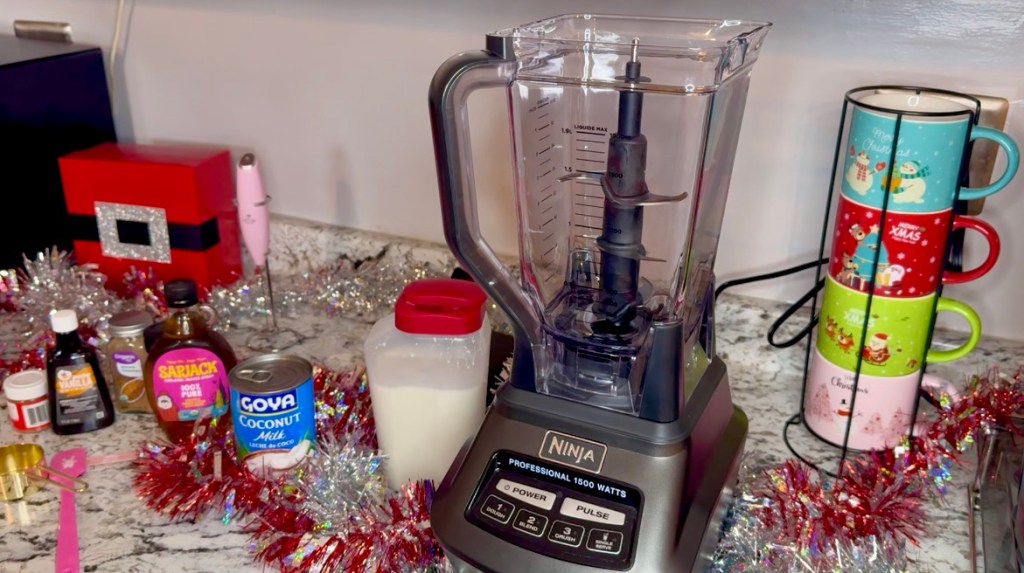 I used this super cute Christmas mug set from Amazon for these holiday coffee drinks. I love it because it comes with a stand so it doubles as a Christmas decoration and a function mug for all the holiday feels. Most of the links in this post are for Amazon products because I love that free shipping, y’all.