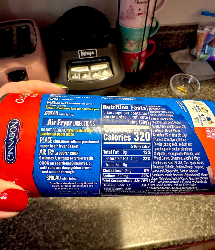 You must use the Grands version of the pillsbury cinnamon rolls because they’re the only ones that unravel. They have air fryer directions on the back but my air fryer did not take that long.