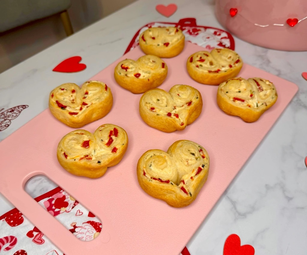 Don’t forget the heart shaped crescent roll snacks too! Valentine’s Day treats and snacks can be savory too! The roasted red pepper gives them extra Valentine’s Day vibes too!